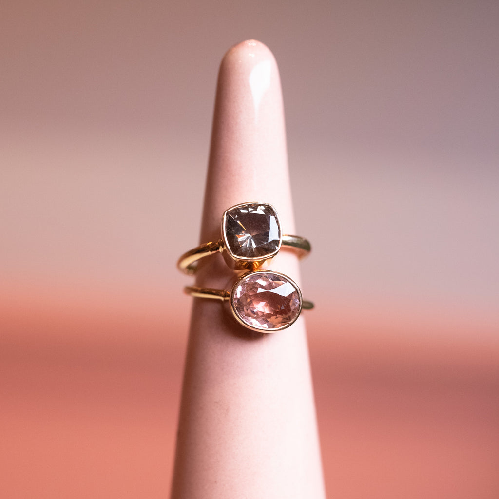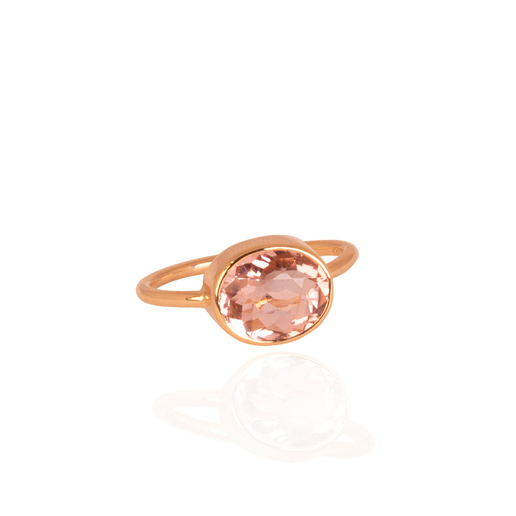 Hello Lovely – A luminous 2.65 ct light pink tourmaline, hand-set in solid 18k red gold. Its soft, glowing hue brings instant warmth and radiance, making this one-of-a-kind statement ring both unforgettable and effortlessly lovable.